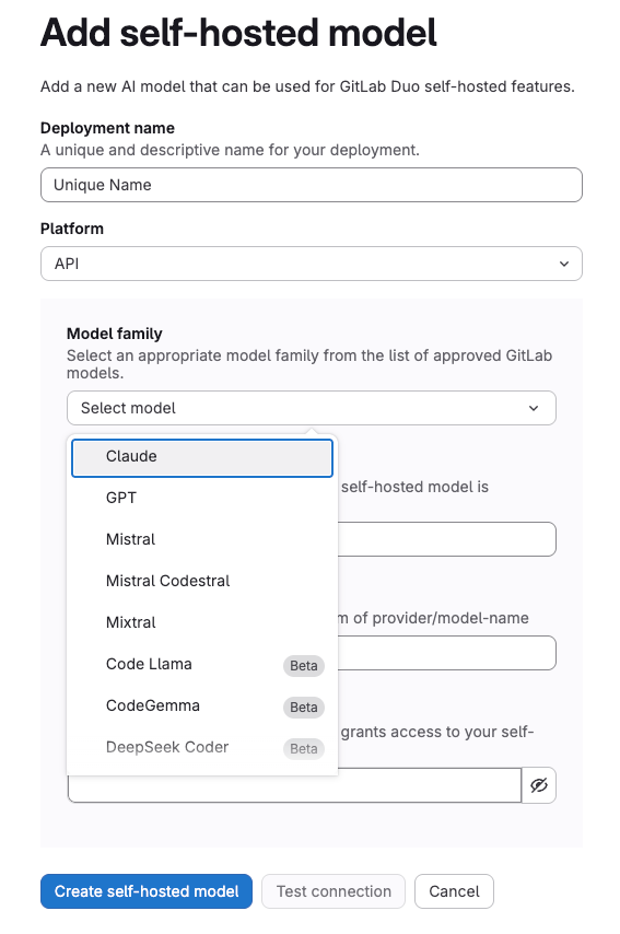 Administrators have the capability to set up compatible models for the GitLab Duo Agent Platform. If using AWS Bedrock or Azure OpenAI, administrators can also configure Anthropic Claude or OpenAI GPT models. Learn more here. Learn more here.