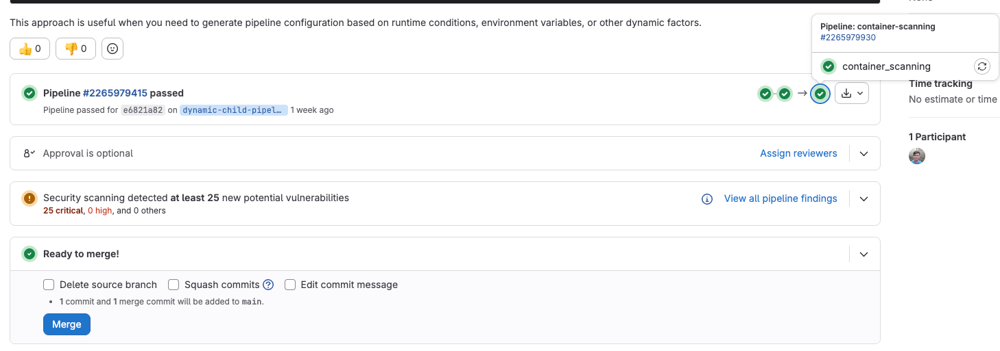 The enhanced merge request widget presents a unified security overview by displaying reports from child pipelines alongside the parent pipeline's results. Each child pipeline's reports are presented individually, and the corresponding artifacts are available for download. This central view accelerates merge request reviews and significantly reduces the time spent investigating failures when utilizing parent-child pipelines. Learn more here.