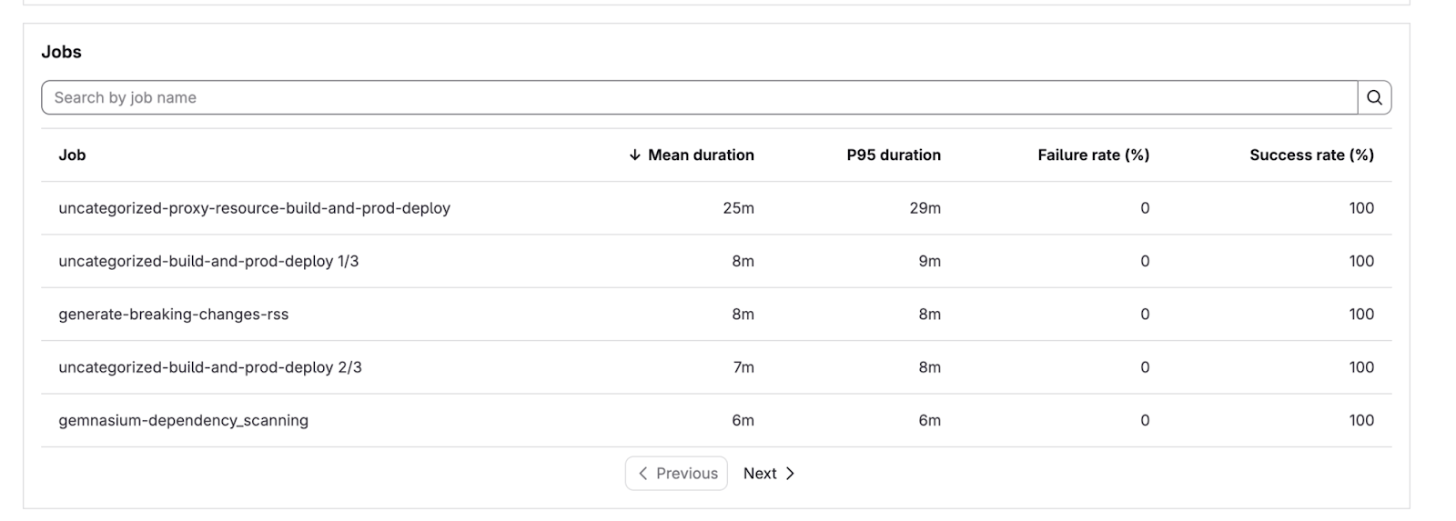 GitLab CI/CD analytics has been enhanced to combine performance trends for both CI/CD pipelines and individual jobs. This new capability, integrated directly within the GitLab UI, allows developers to quickly pinpoint inefficient or problematic CI/CD jobs. By providing these tools in context, developers can effectively identify and resolve CI/CD performance bottlenecks that could otherwise severely hinder development team velocity and overall productivity. Furthermore, for platform administrators managing GitLab at an enterprise scale, this consolidated CI/CD job data can minimize the reliance on external or custom-built CI/CD observability solutions. Learn more here.