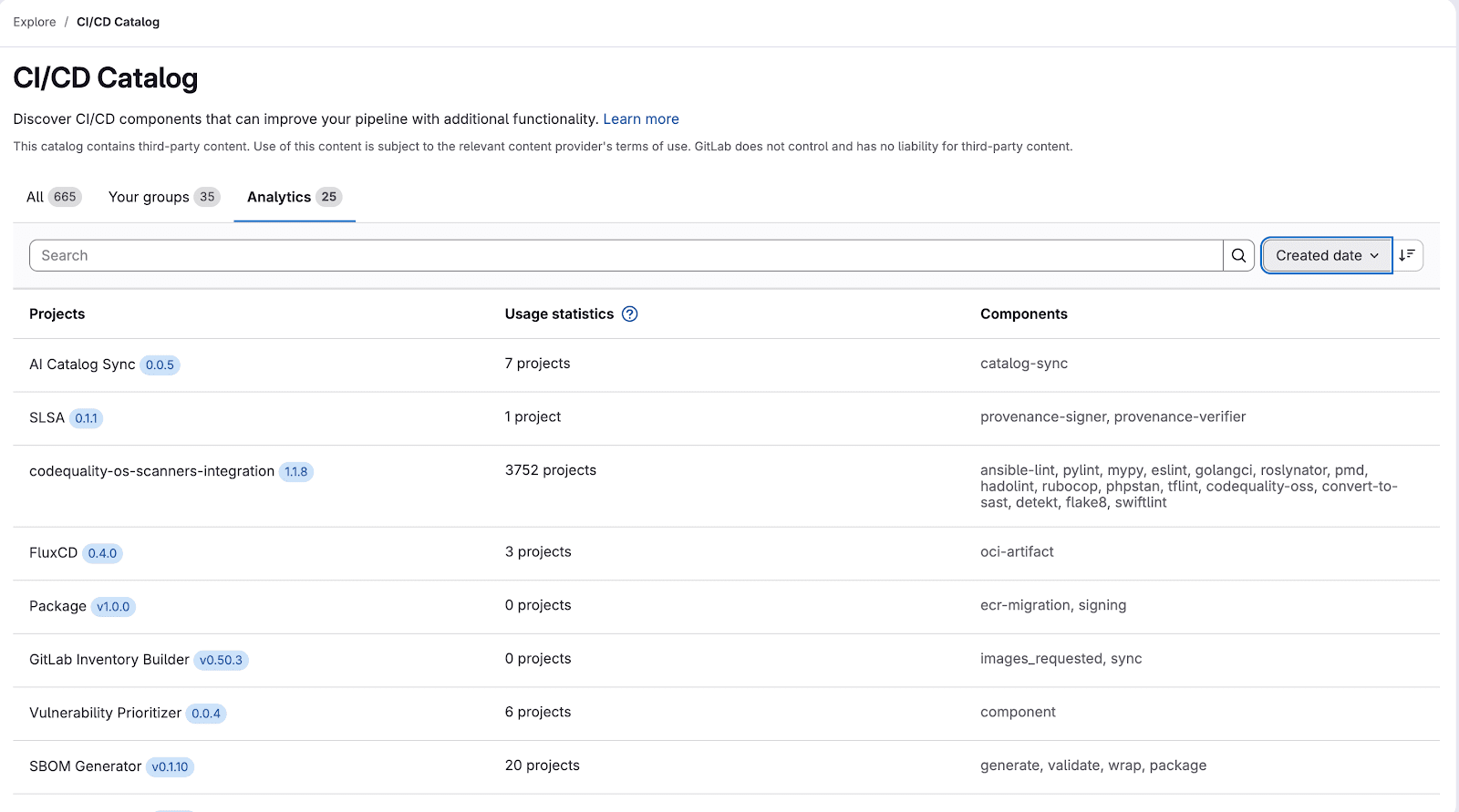 Teams now have clear visibility into the usage and adoption patterns of their CI/CD Catalog component projects across the organization. This update allows you to easily view usage counts, providing high-level insight into which component projects deliver the most value, enabling better optimization of your catalog investments. Previously, this visibility was not available. Learn more here. Learn more here.