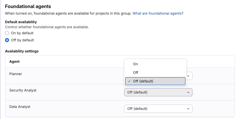 Customize your configuration by toggling all foundational agents on or off by default, or manage individual agents to ensure compliance with your organization's security and governance policies. Learn more here.